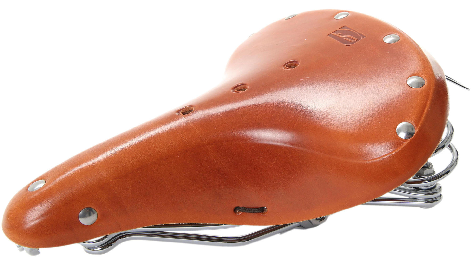 CrMo zadelrail met dubbele stangen, met 2 drukveren, bovenmateriaal glad kernleder, stijlvol zadel in een exclusieve classic look, met strop, voor kaars-zadelpen, ca. 1169 g